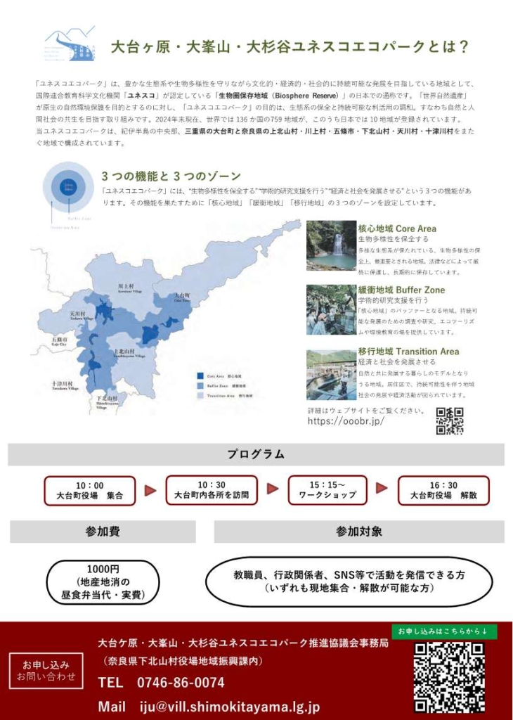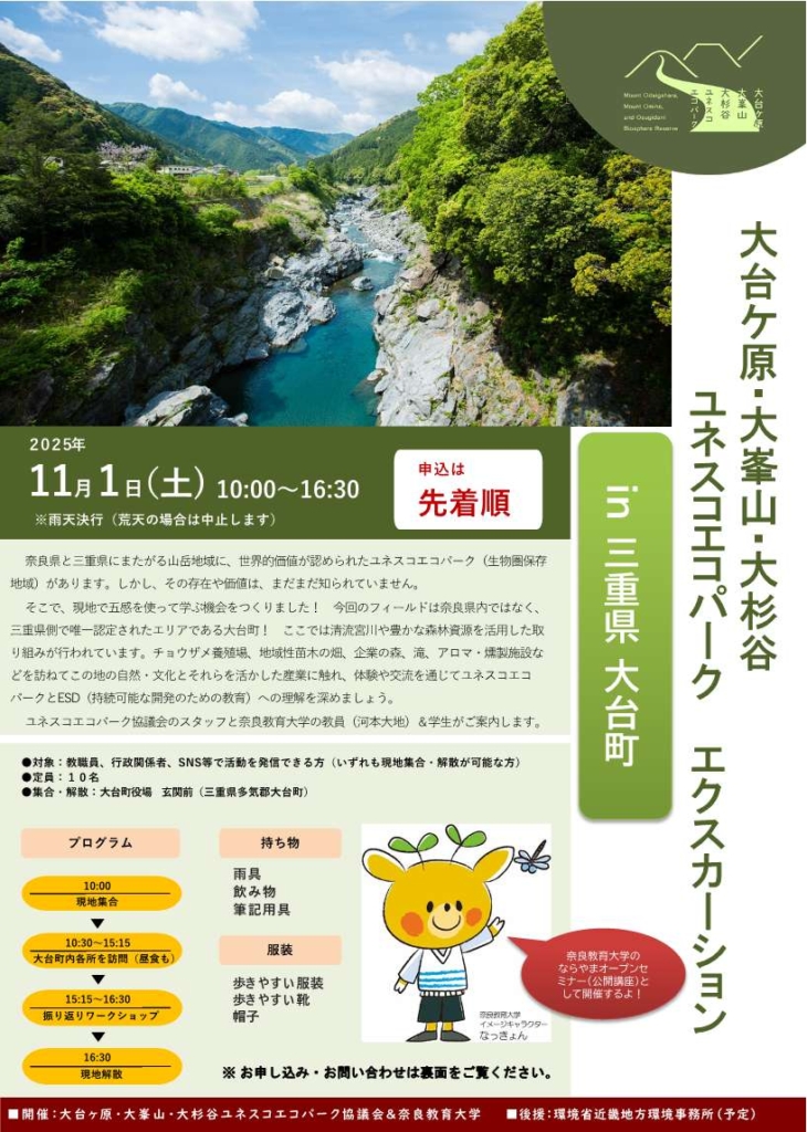 ユネスコエコパーク協議会のスタッフと奈良教育大学の教員(河本大地)&学生がご案内します。